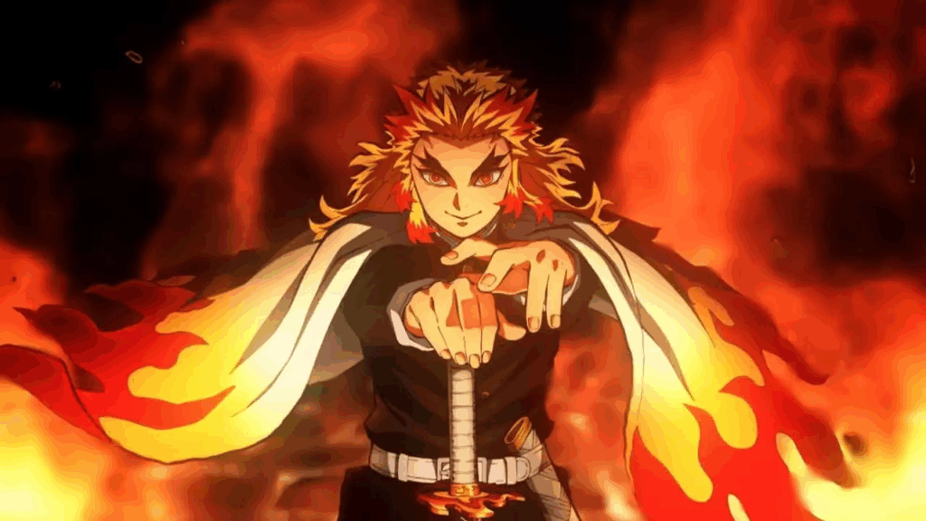 A Respiração das Chamas é uma variação direta da Respiração do Sol, herdando sua intensidade e poder explosivo. Baseada em ataques frontais e devastadores, é um estilo que consome o inimigo como um incêndio incontrolável. Rengoku cresceu em uma família de Hashiras das Chamas, mas viu o pai desistir após a morte da esposa. Sem apoio, treinou sozinho e escolheu carregar o legado com entusiasmo, carisma e disciplina. Seu sacrifício no Trem Infinito mostrou que sua chama não era apenas técnica, mas também inspiração.