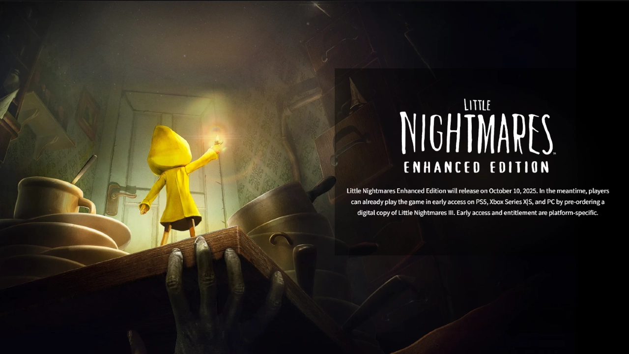 A Bandai Namco Entertainment confirmou que Little Nightmares Enhanced Edition será lançado em 10 de outubro para PlayStation 5, PlayStation 4, Xbox Series X|S, Xbox One, PC (Steam e Xbox no PC), Nintendo Switch e Switch 2.
