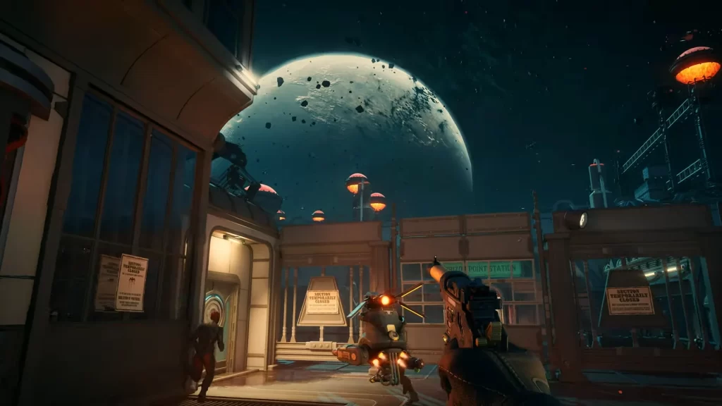A história coloca o jogador na pele de um comandante da Diretoria Terrestre, uma instituição supostamente dedicada a preservar a ordem pelas colônias espalhadas pela galáxia, ainda que essa “ordem” muitas vezes sirva apenas para manter o lucro fluindo para quem está no topo. Em um universo onde cada rua tem um dono, cada doutrina tem uma marca registrada e até a esperança parece um produto licenciado, a ideia de controle nunca passa de fachada, sustentada por propaganda institucional e armas apontadas para a direção certa.